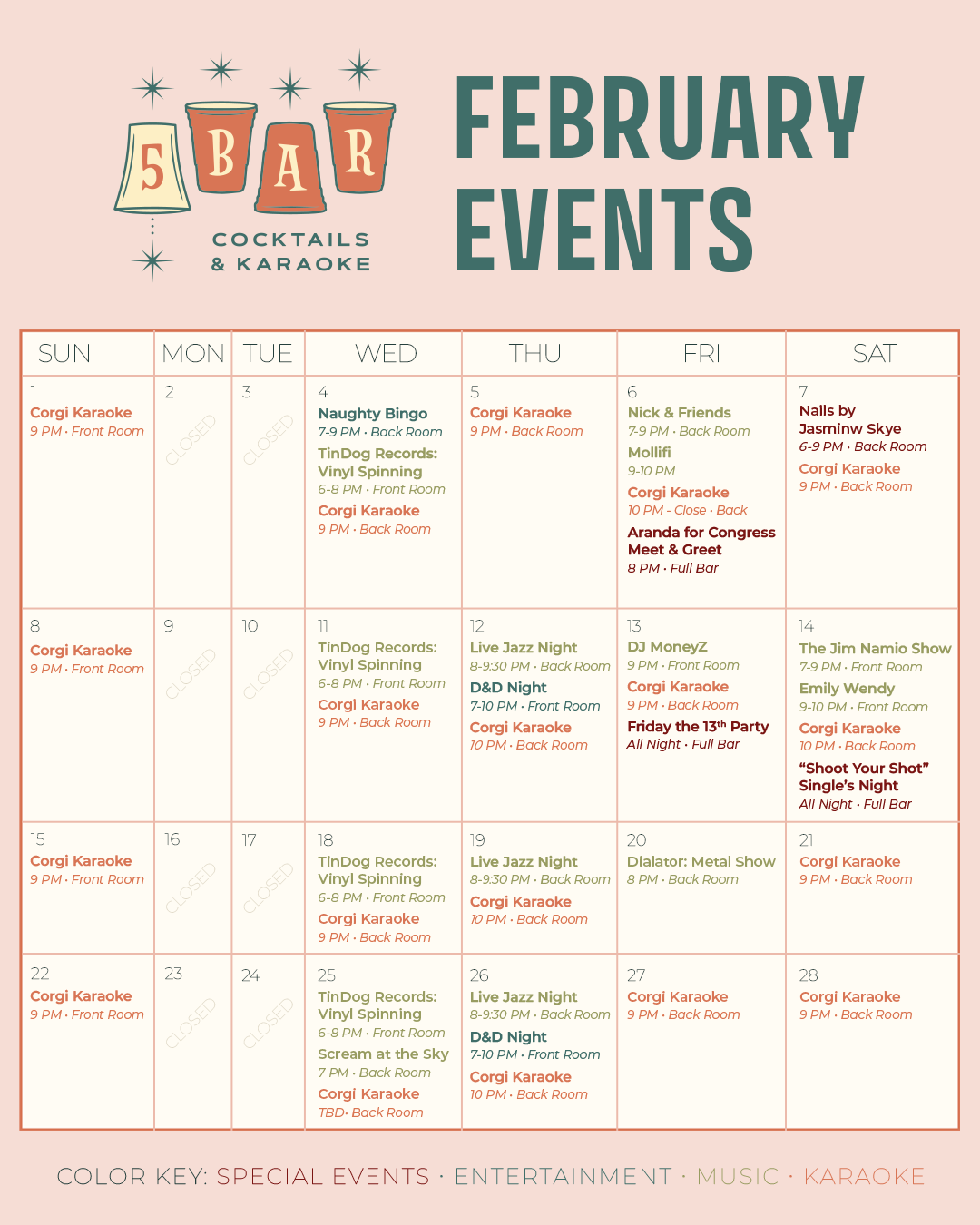 Private events: Reserve the backroom and patio, or even the whole bar, for just about any celebration. It’s what the space was made for.